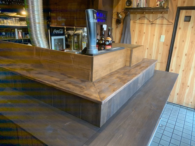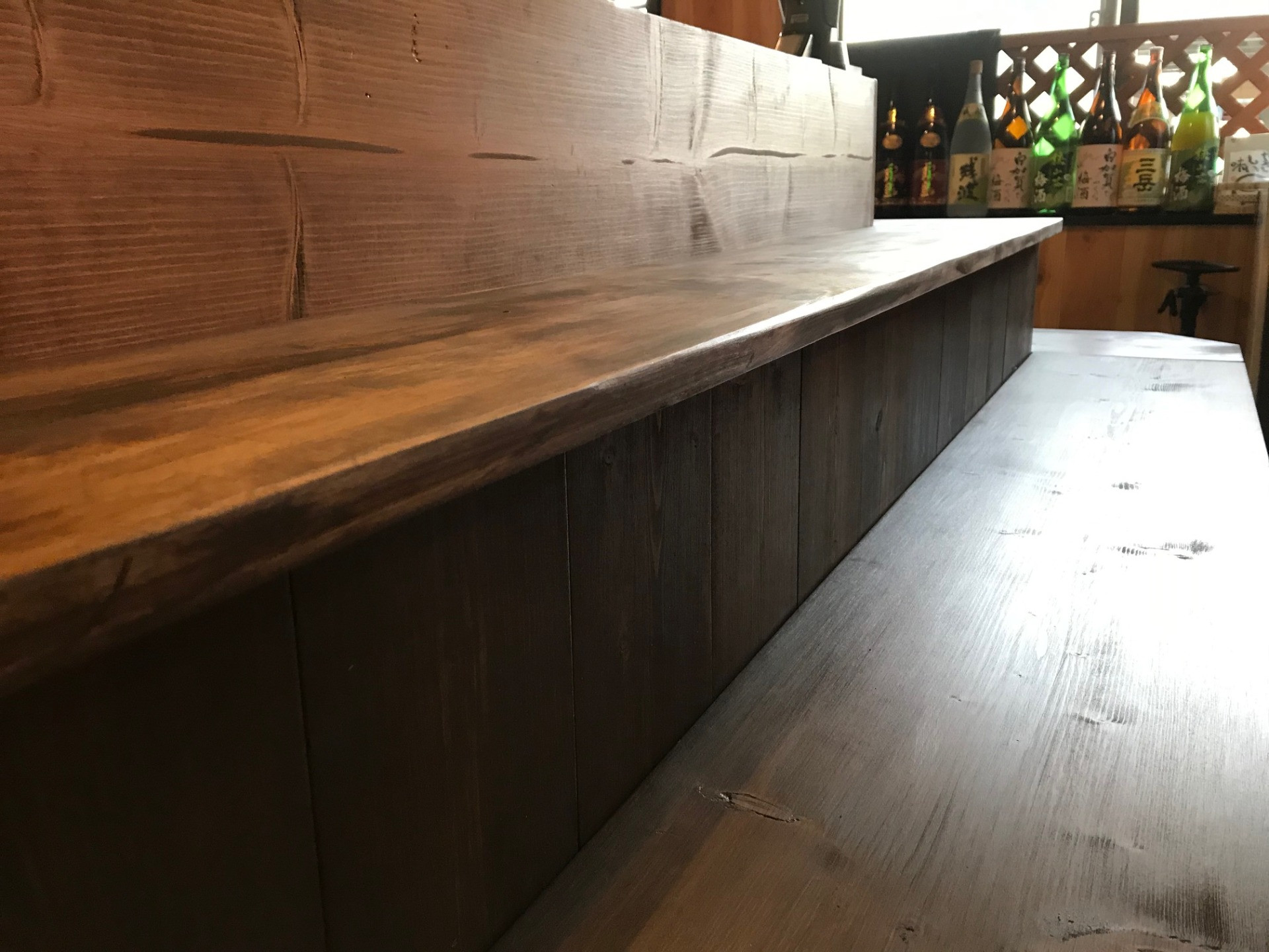 今回は伊丹市瑞穂町の『鉄板居酒屋 一杉一』さんのカウンターをフェイクビンテージウッドを使用し