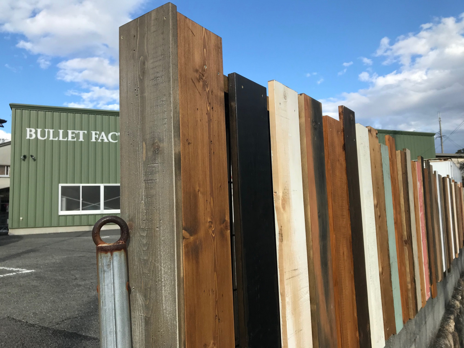 今回使った壁材は、弊社取り扱い商品のフェイクビンテージウッド。明るい印象にしたかったので、SPF材のレギュラー商品の他、スチームドライウッド、バターミルクペイント塗装材も混ぜてカラーバリエーションを豊富に使用しました。