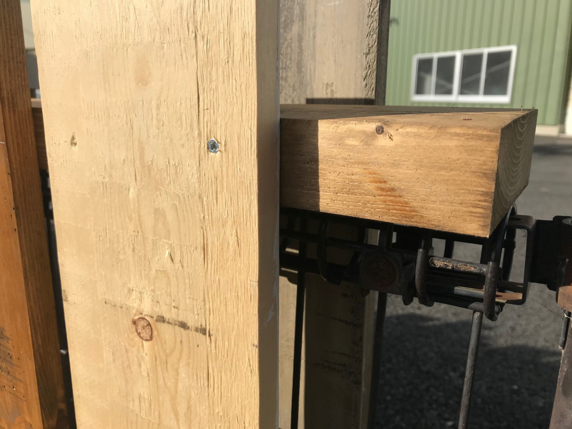 元々設置していたフェンスが比較的丈夫だったので、これをベースに構造材を追加し、そこに壁材を取付けていきました。