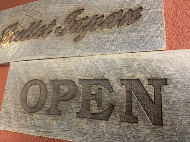ビンテージウッドにレーザー加工でサイン、看板、表札を製作