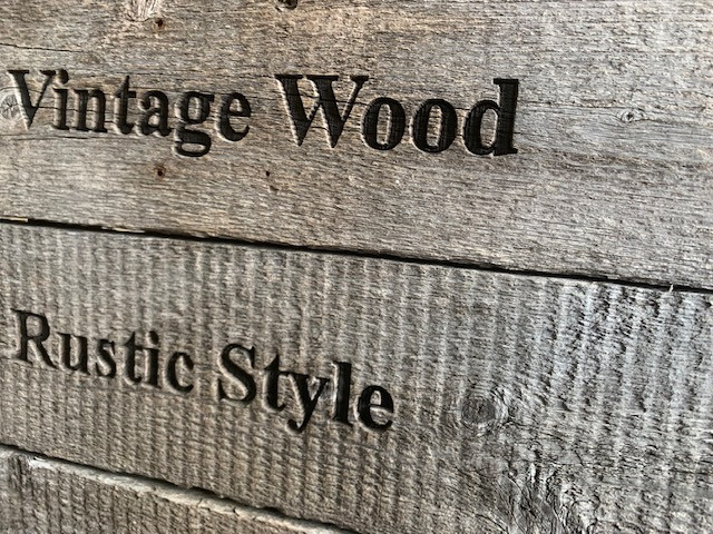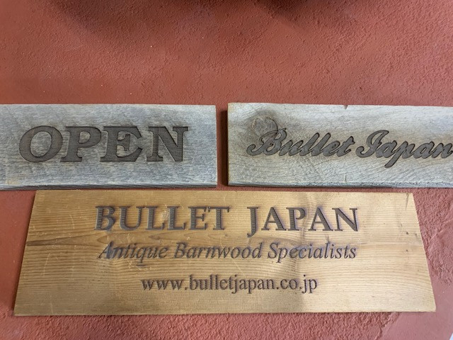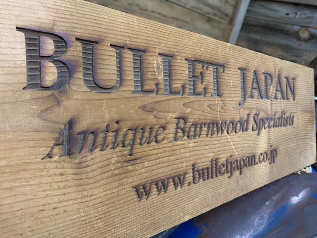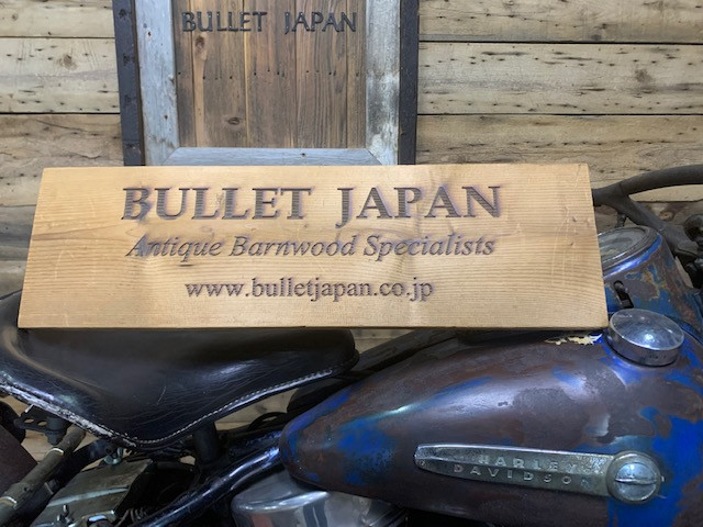 ビンテージウッドにレーザー加工でサイン、看板、表札を製作します。