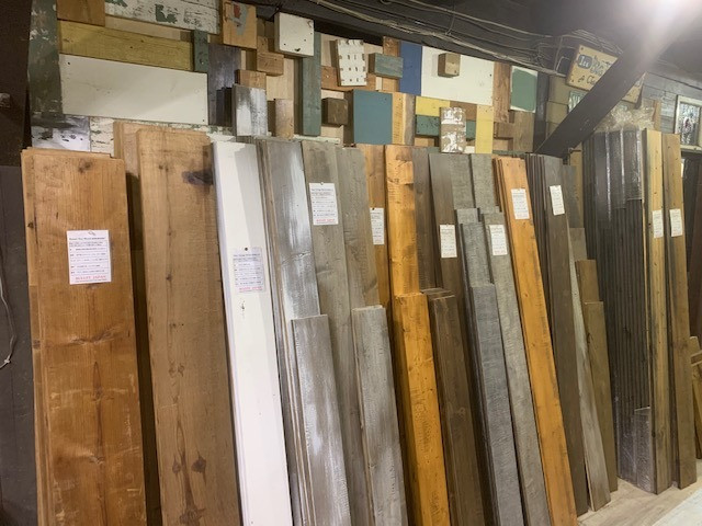 ブレットジャパン池田ショールームにはフェイクビンテージウッドを色ごとに常時10枚以上展示しています。