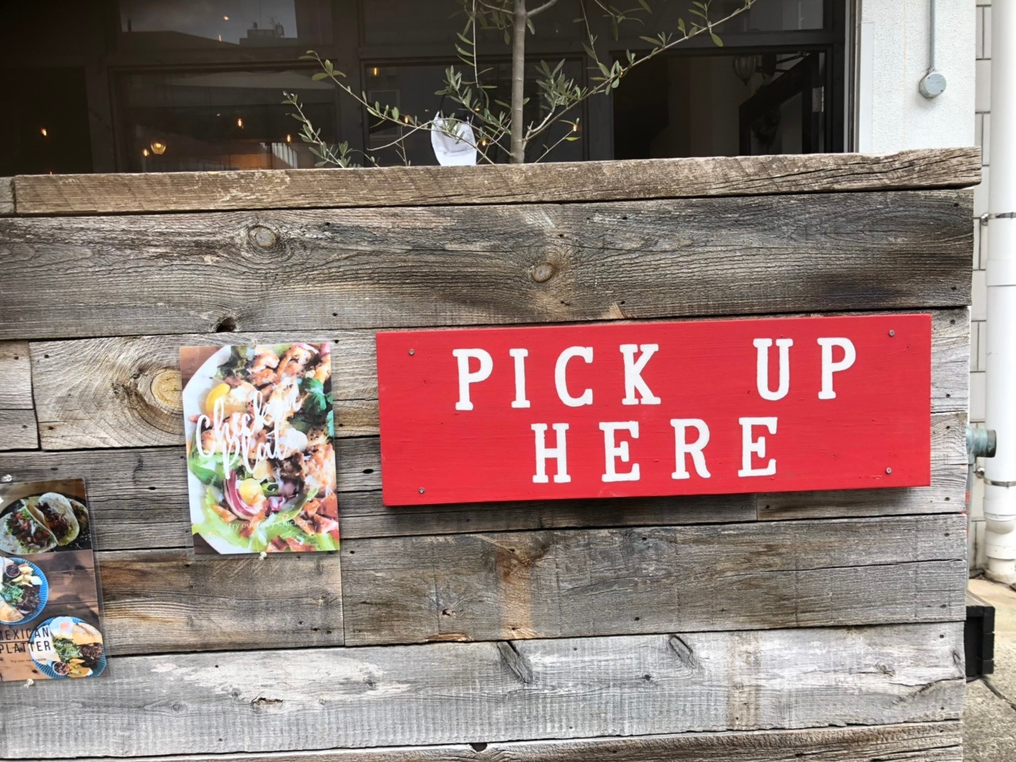 バターミルクペイントで塗装した看板はビンテージ加工もなく、ポップな仕上がりになります。