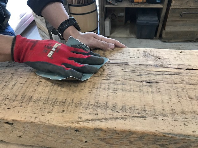 今回はこのアンティークプランクを使ったローテーブルを製作しました。