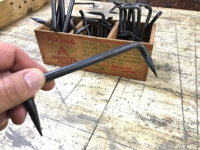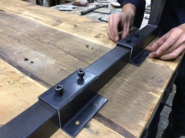 今回は部材の重さや見た目の面白みを考慮して鉄製のカスガイを使用。