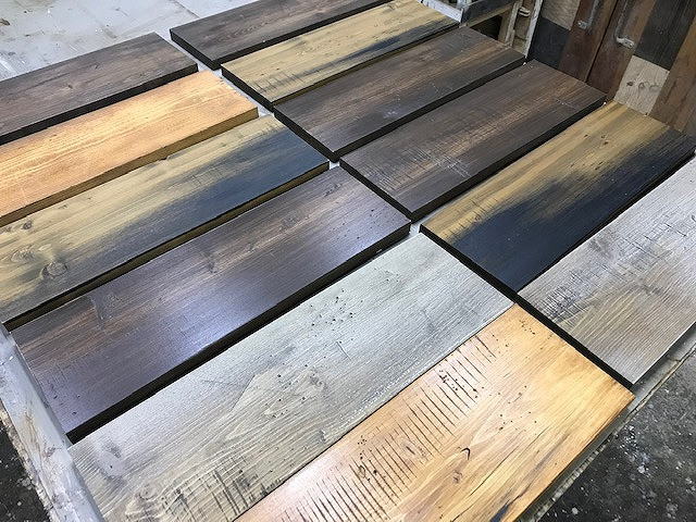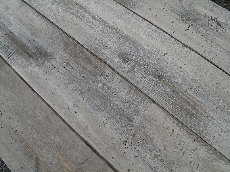 フェイクビンテージウッド(古材風仕上材)は無垢のSPF材(針葉樹系の混在材)を古材風に加工した商品です。