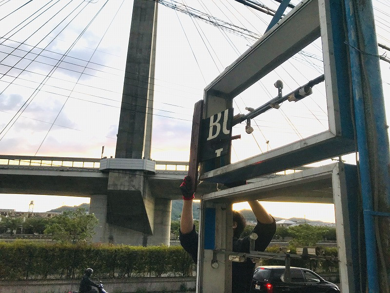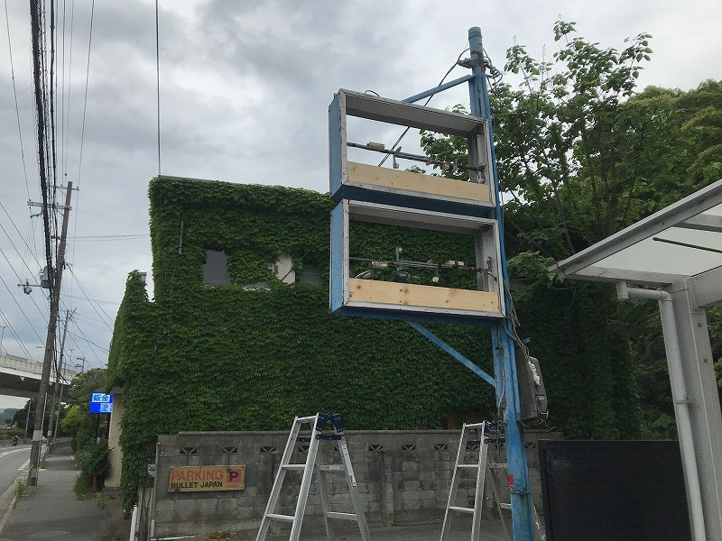 解体すると元のポール看板が姿を見せました。これがどう変身するのか楽しみです。