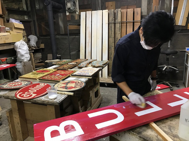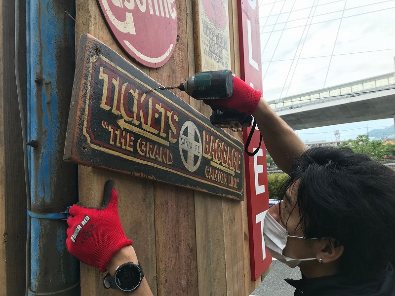 アメリカンテイストのサインボードをリニューアル【大阪で古材リフォーム】