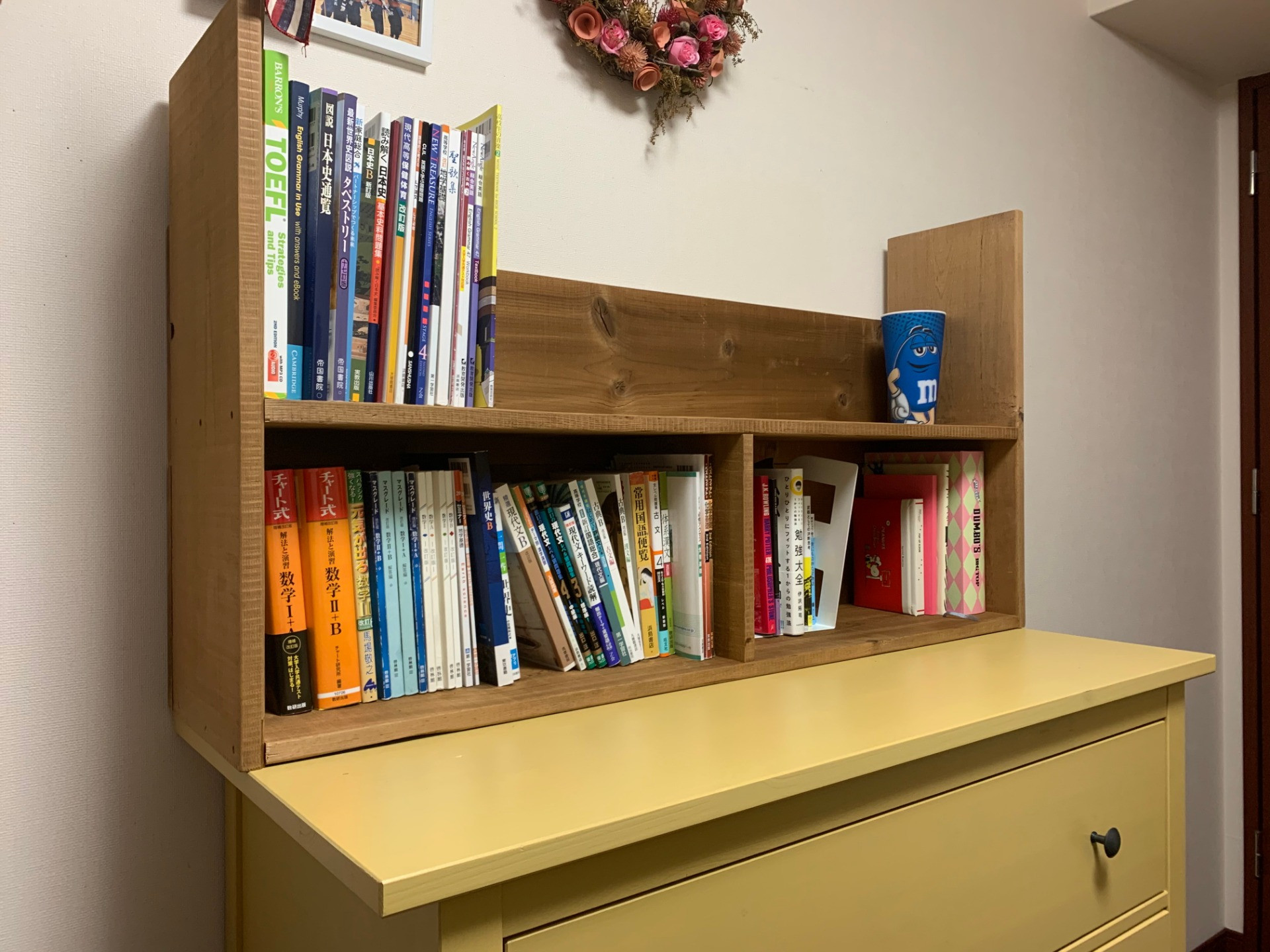 ブログタイトルどおり、スチームドライウッドを使用して勉強机用の本棚を製作してみました。
