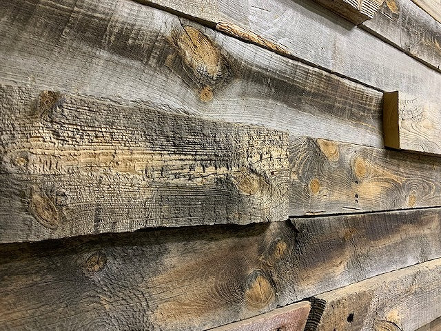 バーンウッド(建物等に使っていた木材)と比べて使用年数が浅いものの、北米独特の寒暖差に曝されて