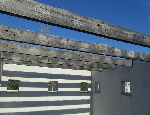 ルーバーとは、細く長い羽板を平行に複数枚並べたもので、内部の根隠しや採光の調整、
