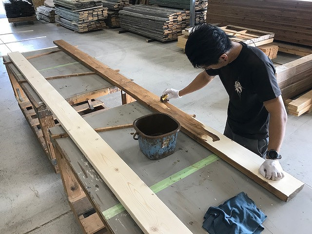 また、今回の仕上げはブレットジャパンで定番の古材感のしっかり出た風合いではなく、