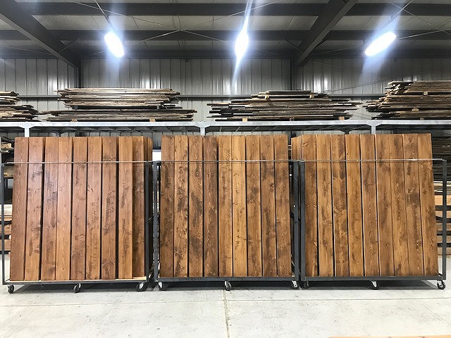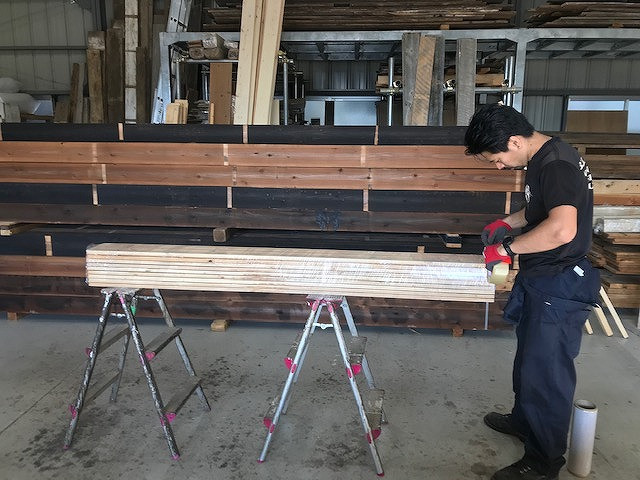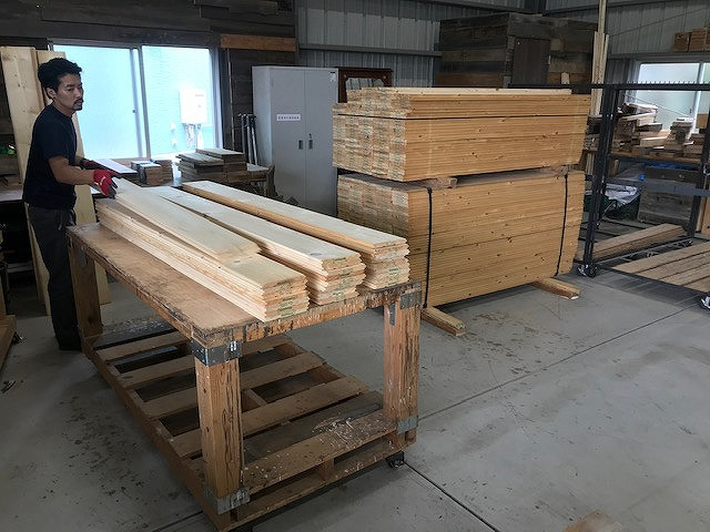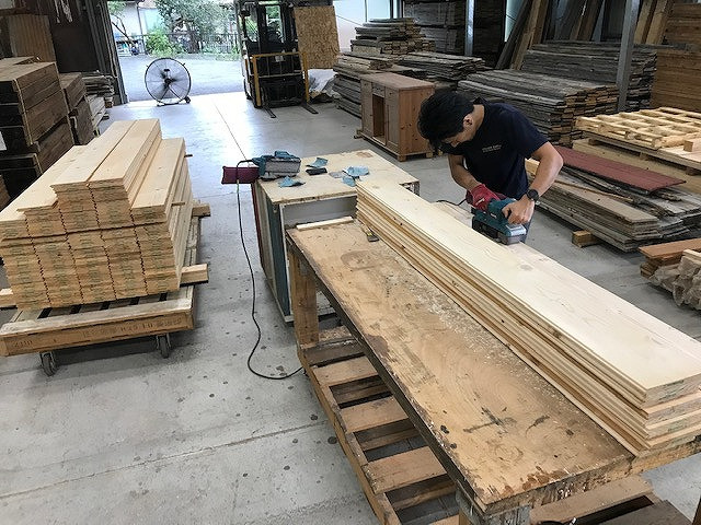 枚数が増えても全て手作業で、材の選別からエイジング加工まで丁寧に行います。