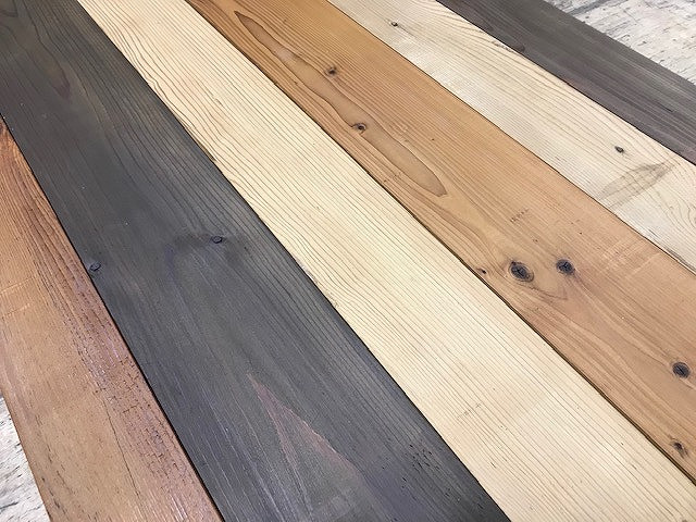 今回使用したのは、SPF材を加工したフェイクビンテージウッドと、ロハスウッド系のスチームドライウッド。