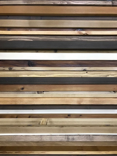 今回はSPF材とスチームドライウッドを使いましたが、バーンウッドなどのアメリカ古材を使うパターンも