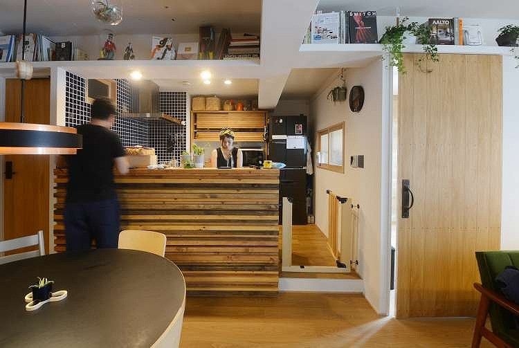 最後に弊社のお客様のご自宅での施工事例をご紹介。こちらでは対面式キッチンの腰壁に今回のような