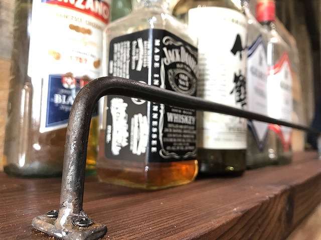 このアイアンバーはその他にも、Barなどでズラリと並べたお酒の瓶が落ちないようにする落下防止柵としてオススメ。