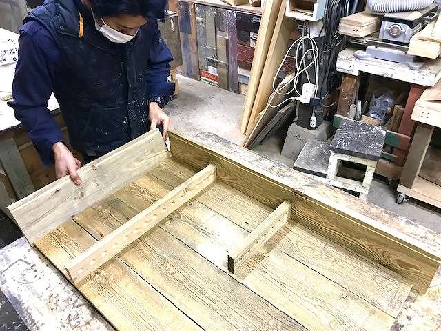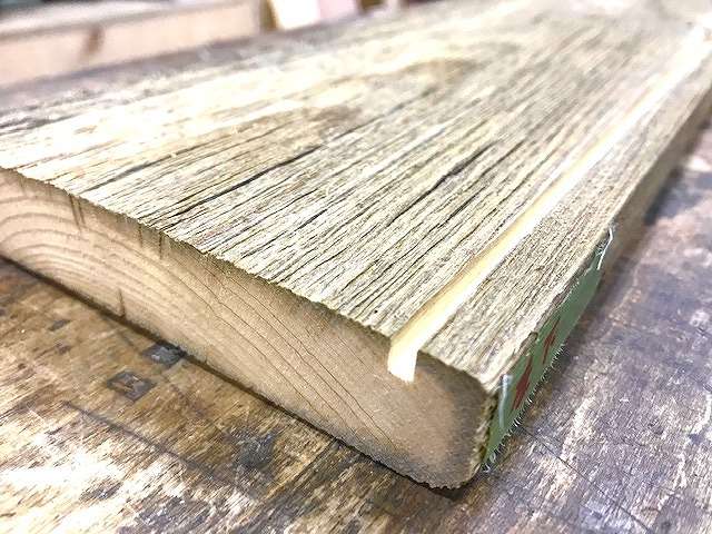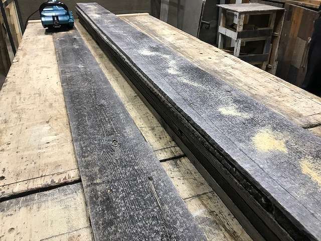 今回は古材の中でもフェンスウッド(北米地域で雪除けフェンスとして使われていた輸入古材)を使って製作しました。