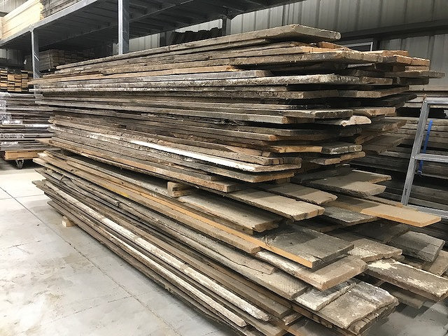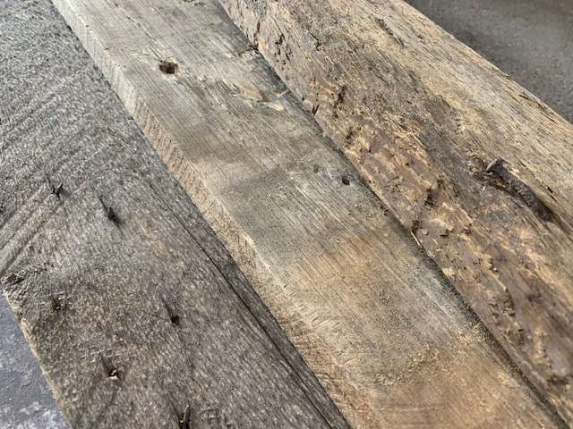 ビンテージウッド(古材)は幅・長さがバラバラで、厚みも違い反りや曲がりがあるなど、DIY初心者の方にはかなり難しいです。
