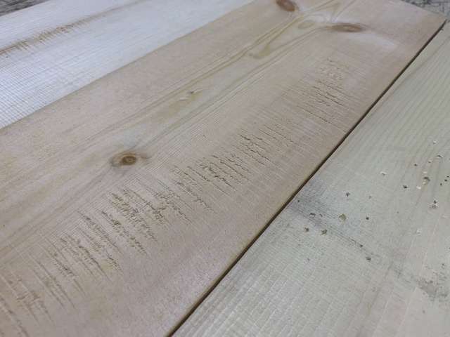 SPF材にいろんなキズをつけて古材のような風合いを再現しています。